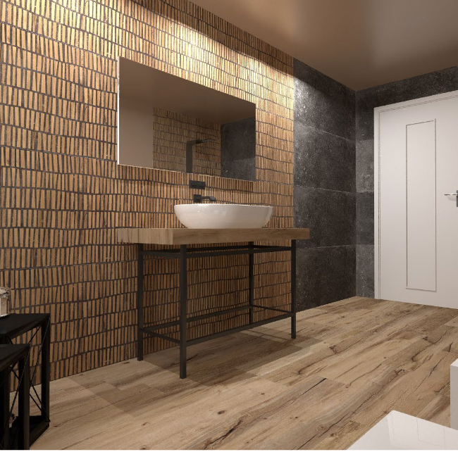 Η επιλογή των πλακιδίων που προμηθεύσαμε αποτέλεσε κεντρικό στοιχείο της αισθητικής του χώρου. Οι υφές και οι αποχρώσεις τους ενισχύουν την αίσθηση κομψότητας, ενώ δένουν αρμονικά με τα ξύλινα στοιχεία, το φυσικό φως και τις οργανικές καμπύλες της αρχιτεκτονικής. Το αποτέλεσμα είναι ένας χώρος που αποπνέει αυθεντικότητα και διαχρονικό στυλ, αποδίδοντας ταυτόχρονα την αίσθηση πολυτέλειας και άνεσης που χαρακτηρίζει το Noesis.