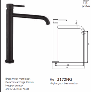 Μπαταρία Νιπτήρος Υψηλή SIRIO ΜΑΥΡΗ PVD 3172NG