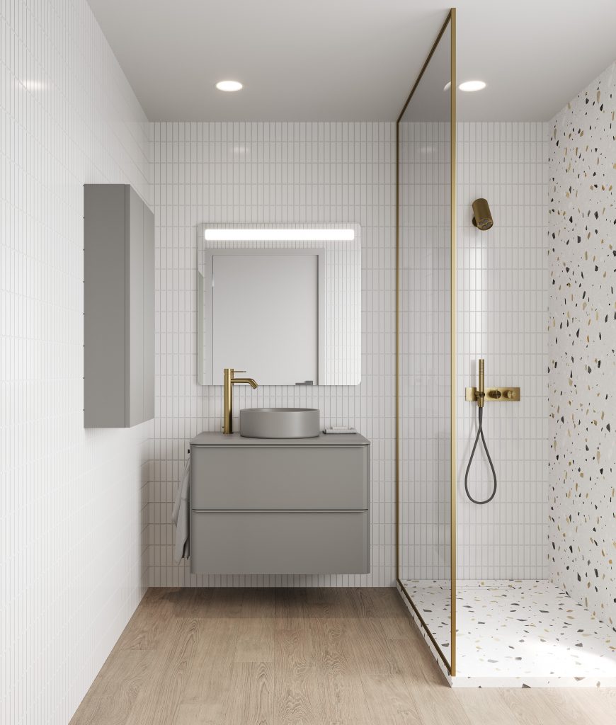 Μοντέρνο και πρακτικό σετ μπάνιου, σχεδιασμένο για λειτουργικότητα και υψηλή αισθητική. Περιλαμβάνει όλα όσα χρειάζεστε για να διαμορφώσετε έναν κομψό και εργονομικό χώρο μπάνιου.