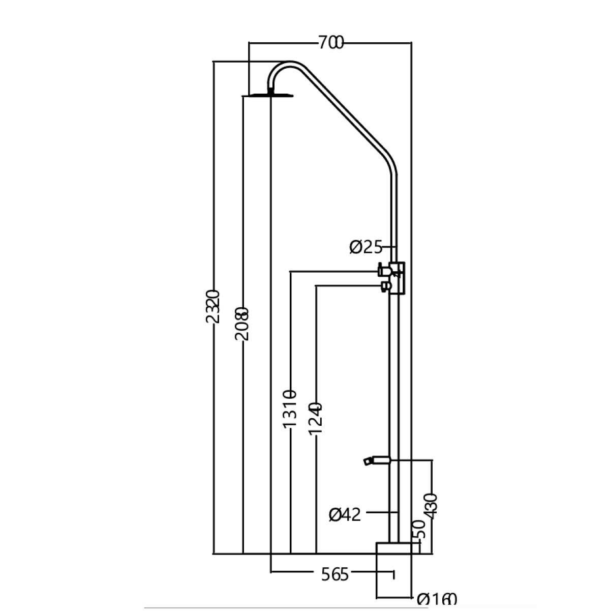 Ανοξείδωτη μοντέρνα Στήλη Πισίνας για μόνο κρύο νερό imexpool κατασκευασμένη από 100% ανοξείδωτο αντιμαγνητικό ατσάλι 316 με τεράστια αντοχή στην φθορά και στην οξείδωση. Διαθέτει και έξοδο νερού για ποδόλουτρο. Ιδανική για εξωτερικούς χώρους. Διαθέτει 232cm Ολικό ύψος και ύψος ροής νερού 208cm.Το προιόν είναι κατασκευασμένο για εξωτερική χρήση και έχει αντοχή από 0ºC έως και 55ºC.