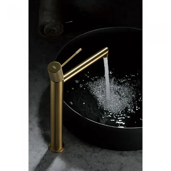 Η ψηλή αναμεικτική μπαταρία πάγκου PVD Χρυσό Ματ της σειράς IMEX LINE ενδείκνυται για μοντέρνους νιπτήρες πάγκου. Προσφέρει άψογη αισθητική και απόλυτη ακρίβεια στη μίξη νερού.